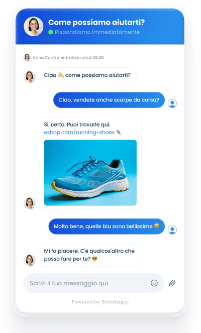 Chatta in tempo reale con i tuoi clienti e trasforma le interazioni in fedeltà al marchio. Utilizza la risposta rapida per aumentare il coinvolgimento e le vendite.